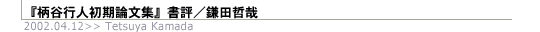 �i�Ō�Ɏ��I�Ȋ��z���q�ׂ�B���́A�u�ӎ��Ǝ��R�v�̏��e���܂߂āA�{���Ɏ��^����Ă���_���̂قƂ�ǂ��A�̏��o��T���ēǂB���Ɂu�v�z�͂����ɉ\���v�́A���鎖��őS�Ă��菑���ŏ����ʂ����B���̌��ʁA�u���Ȍ��v��u���Ȕ�]�v���̌�b���A���ł������̕��͂ɖ��ӎ��Ɍ���鎖�Ԃɂ͐Ԗʂ��邾�����B�����A���ǂ������C������̈ӂɐ�̂Ă����̂�����B�ڑ���u�Ƃ���Łv�u���āv����Ⴞ�B���̕p�p�́A���J�̔��z������ŃX�^�[���̂悤�Ɏ��݂��z���ɂ��Ă��邪�A�������̂��̂ւ̋��S�͂��s���ȏꏊ�ł́A���͂̌����͂��ɂ߂ĎU���ɂ��Ă���B�j�i2002.4.12�j |