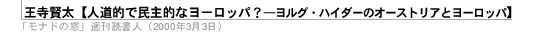 �@���[���b�p�����̂́A�s���ʉ݂̓���Ƃ������o�ϓI�ȑ��ʂ�D�悳���ēW�J���Ă������߂ɁA�s���◧�@�́A�e���̊t���E�����̃C�j�V�A�e�B���Ɉς˂��Ă����B����͌���������A���[���b�p�����̂����ꎩ�̂Ƃ��Ắu����I�v�Ȑ��x�������ɂ͂������Ă��炸�A����Ŏs��̘_���ɂ�鋌���̎Љ�I�g�D�̗������������炵�Ȃ���A���s���ւ̌��͂̏W�����A�����Ă���Ƃ������Ƃ��B��������[���b�p�����̂́u�鍑�v���ƌ����Ƃ���A�n�C�_�[�ɑ�\�����悤�ȁu�ɉE�v�́A�l���`����r�O��`�܂ł�����f�}�S�M�[���������āA�����̎Љ�g�D���u�鍑�v�ɑ��ĕ\������s���̏nj�Ƃ��Č��邱�Ƃ��ł���B����u�l���I�Ŗ���I�ȃ��[���b�p�v�Ɓu�ɉE�v�̃n�C�_�[�Ƃ́A���݂̗��j�I�R���e�N�X�g�ɂ�����\����̂��Ȃ��Ă���̂��B�����́A���̑o���ɑ��Čx�����K�v���낤�B�������������[���b�p�̌���ɂ����āA�u�l���v��u�����`�v���u�鍑�v�̋Ɖ����Ă��܂�Ȃ����߂ɂ́A����ŁA�]���̍������Ƃ̘g�g�݂̒��ł́u�����v���u�Η��v�̉B���ƂȂ邱�Ƃ�������Ȃ���Ȃ�Ȃ����A�����ŁA�g�債���郈�[���b�p�Ƃ�����̋����̂̂Ȃ��ŁA���̋����̂̐����̐����Q���𐧓x�����A�ނ�̊Ԃ̑Η��A�����A����𐭎��I�ɑg�D���邱�Ƃ��s���ł���B�\�����́u�鍑�v���܂邲�Ɩ��剻����Ƃ����A���j�ォ�ĂȂ�����Ȏ��݂ƂȂ�͂����B |